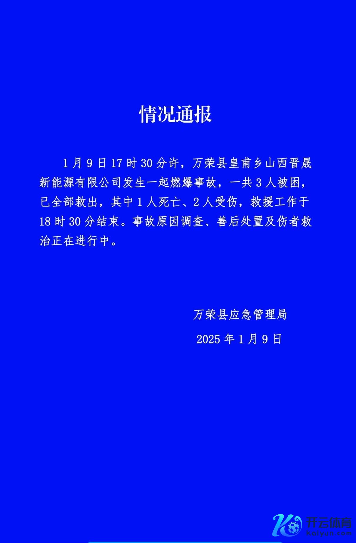 山西万荣一工场发生爆燃事故致1死2伤山西万荣一工场发生爆燃事故致1死2伤
