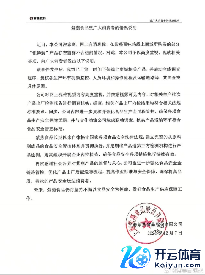 紫燕食物回话“家具被检出大肠菌群超标”:相关家具出厂内检效果均合乎相关王法圭臬条件紫燕食物回话“家具被检出大肠菌群超标”:相关家具出厂内检效果均合乎相关王法圭臬条件
