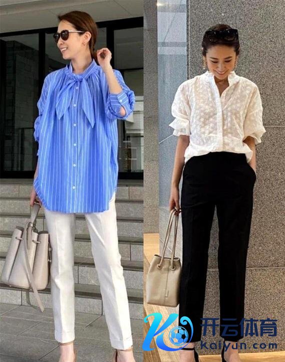 若想让女东说念主上半身线条显得紧致,可通过修饰上衣来完了。如斯一来,在挑选与之搭配的9分裤时,就应当尽量聘用宽松一些的项目,这么举座搭配起来恶果省略会更好。